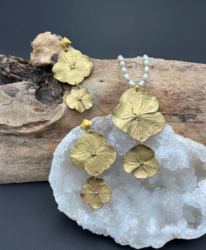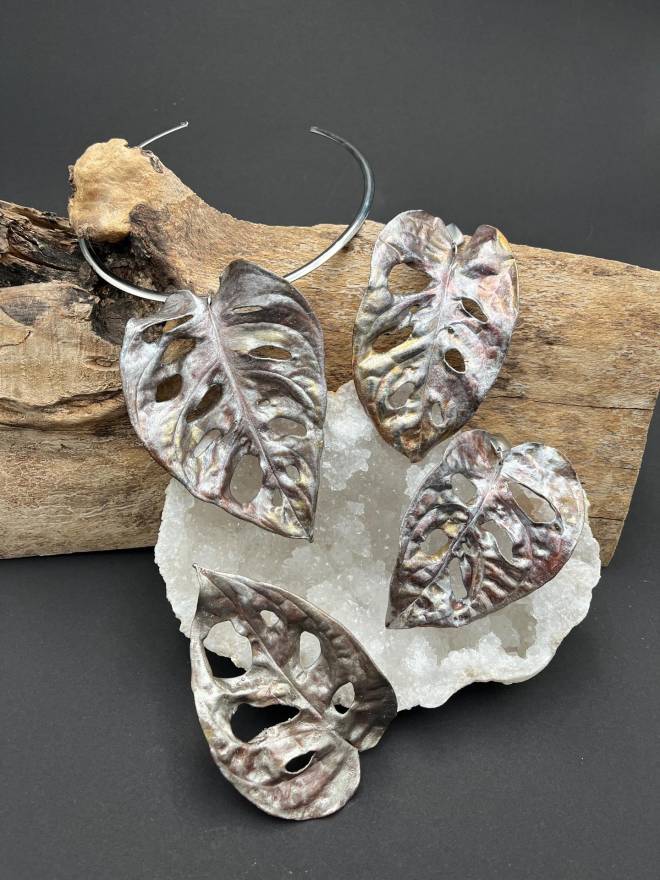 Tvořím šperky formou pokovení přírodnin vrstvou mědi. Tato technika výroby se nazývá galvanoplastika. Nejčastěji pokovuji listy, květy, větvičky a nejrůznější plody. Pokovenou přírodninu povrchově upravuji tak, aby nepodléhala oxidaci a dále ji patinuji do barevných odstínů, zejména do různých tónů zlaté a stříbrné. Stejnou technikou tvořím šperky z minerálů, kterým se tak dostává originálního a jedinečného uchycení do šperku.