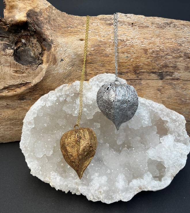 Tvořím šperky formou pokovení přírodnin vrstvou mědi. Tato technika výroby se nazývá galvanoplastika. Nejčastěji pokovuji listy, květy, větvičky a nejrůznější plody. Pokovenou přírodninu povrchově upravuji tak, aby nepodléhala oxidaci a dále ji patinuji do barevných odstínů, zejména do různých tónů zlaté a stříbrné. Stejnou technikou tvořím šperky z minerálů, kterým se tak dostává originálního a jedinečného uchycení do šperku.