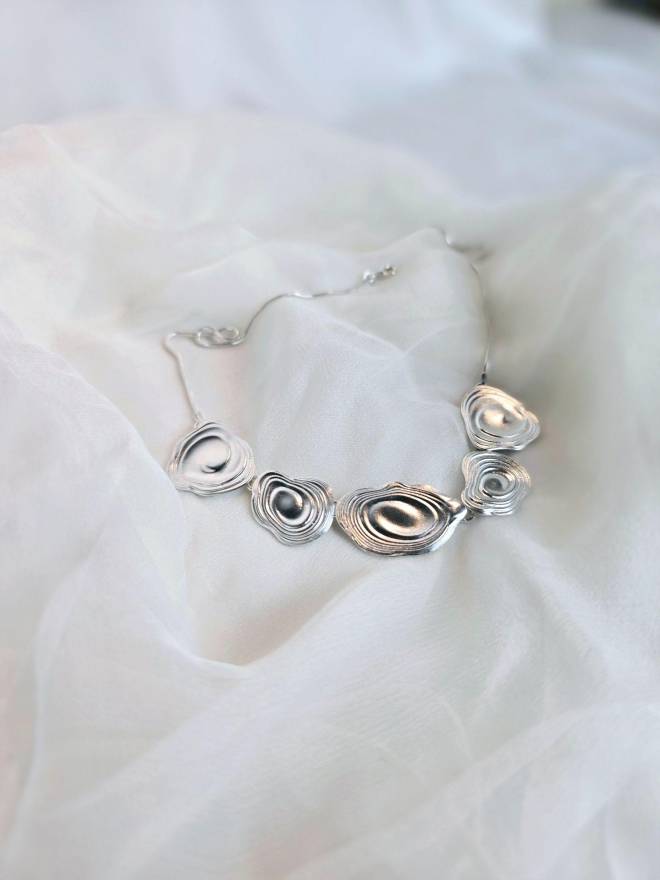 Mé šperky jsou kompletně ručně vyráběné z recyklovaných drahých kovů a pečlivě vybraných drahokamů. Zvláštní technika „tekoucího“ zpracování kovu vytváří výrazový jazyk, ve kterém tvrdý materiál nese otisk měkkosti a organického pohybu. Pracuji s jedinečnou technikou, při níž je roztavený kov vystaven kontrolovaným pohybům. Jakmile ztuhne, tyto pohyby se trvale zapisují do hmoty. Výsledkem jsou organické, spontánně formované a nereprodukovatelné originální kusy. Pevné struktury odhalují jemnou energii proudění a něhy. Svět značky je intuitivní, moderní a kosmický — dotýká se duše. My jewelry is entirely handmade from recycled precious metals and carefully selected gemstones. A distinctive “flowing” metalworking technique creates a visual language in which rigid material carries the imprint of softness and organic movement. I work with a unique method in which molten metal is guided through controlled movements. As it solidifies, these movements become permanently embedded in the material. This results in organic, spontaneously formed, non-reproducible, one-of-a-kind pieces. Solid structures reveal the subtle energy of flow and gentleness. The world of the brand is intuitive, modern, and cosmic — it touches the soul.