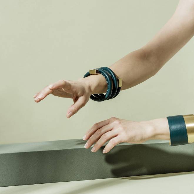 Svetlana Vukov is a jewelry designer from Belgrade, blending minimalism, wit, and industrial aesthetics. With years of experience in the fashion industry, she launched her own brand in 2013, creating distinctive pieces from natural leather, wood, and metals like brass, aluminum, and steel. Her designs are bold, unique, and crafted to be the essence of any outfit.