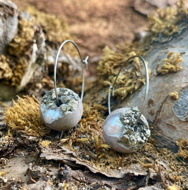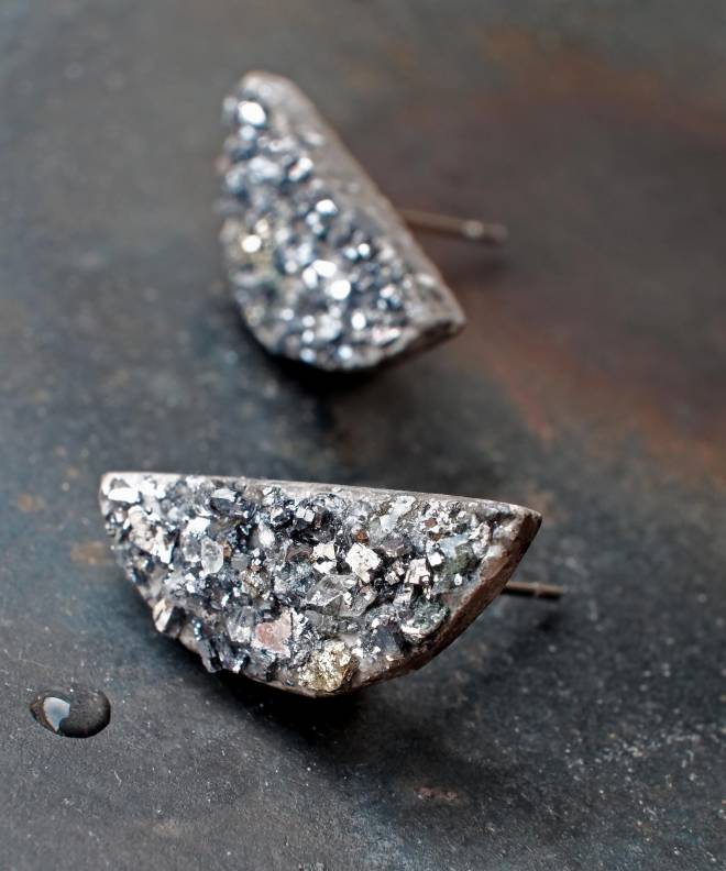 Odlévám šperky z betonu. Baví mě krása drahých kovů a minerálů v kontrastu s industriální povahou betonu. I cast jewelry out of concrete. I enjoy the beauty of precious metals and minerals in contrast to the industrial nature of concrete.